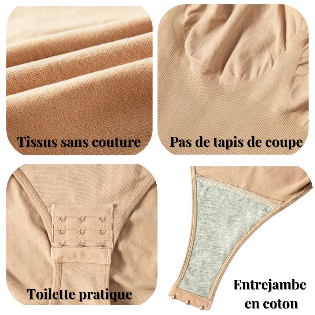 La gaine amincissante est composée de nylon et de spandex, offrant ainsi un mélange de confort, de stretch et de maintien pour sculpter votre silhouette.